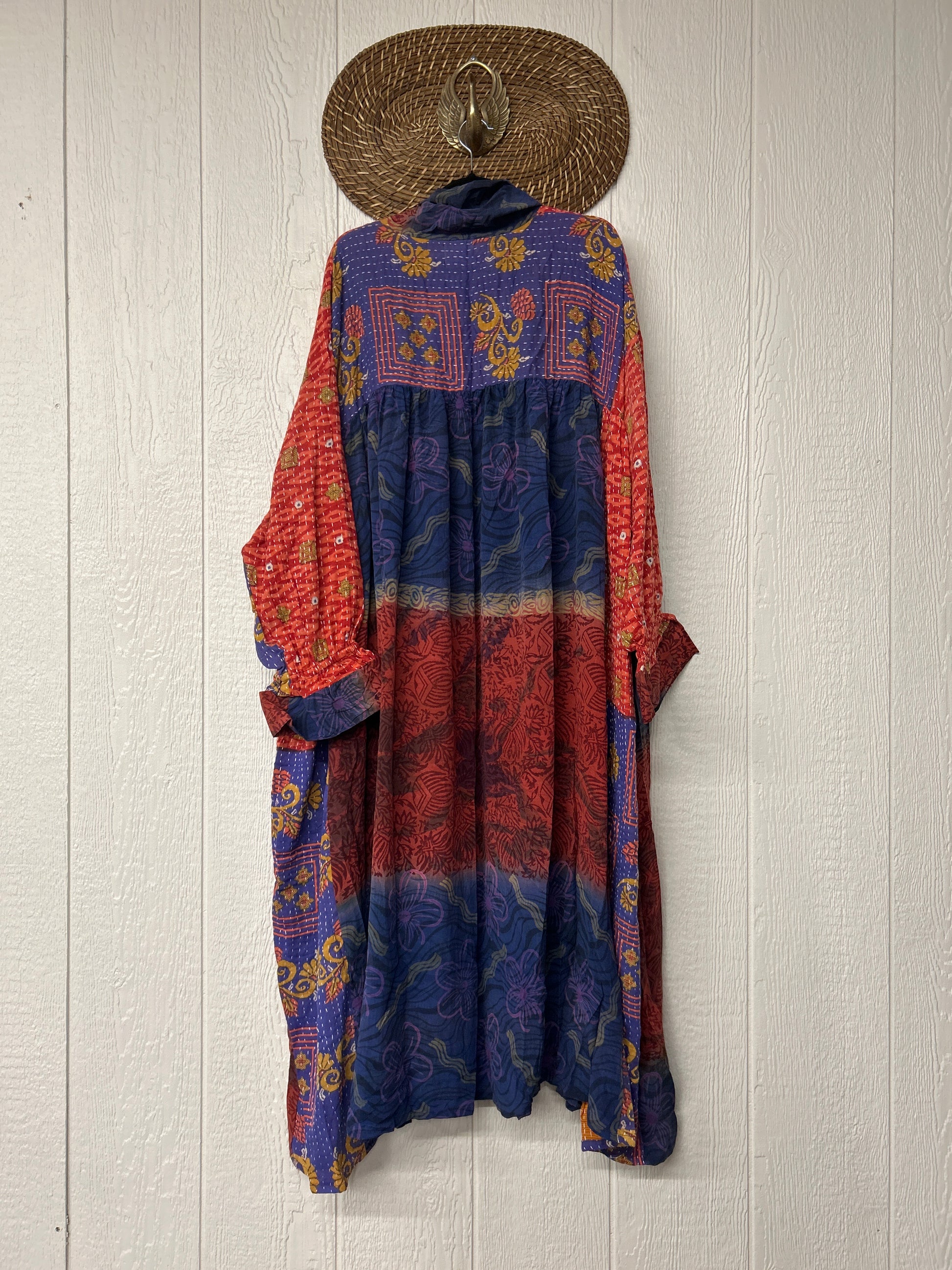 This dream layering piece is made from a mix of our lux vintage kantha embroidered cotton and crepe sari. Features an elastic ruffle sleeve that is easy to pull up or down to your desired length.