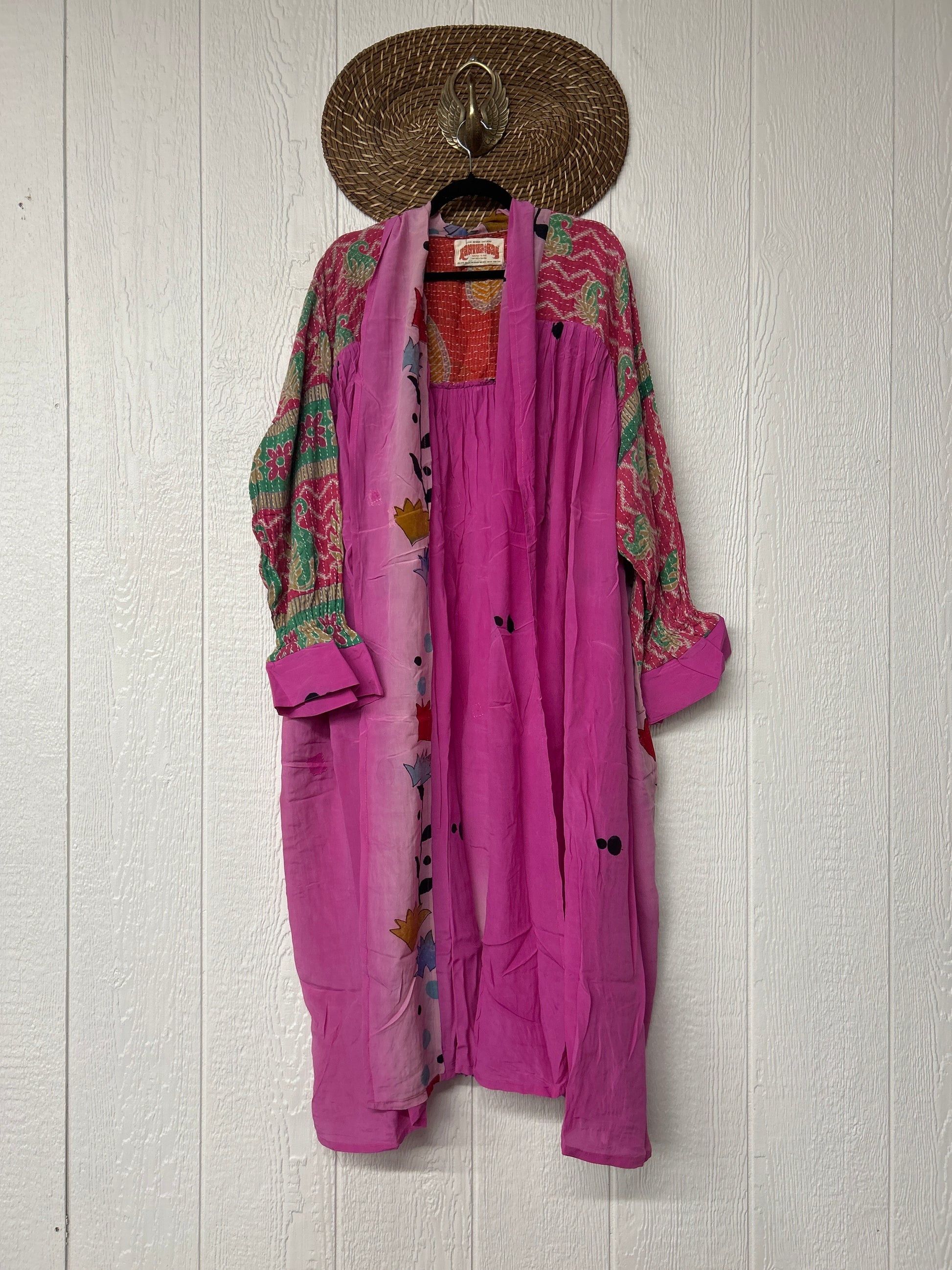 This dream layering piece is made from a mix of our lux vintage kantha embroidered cotton and crepe sari. Features an elastic ruffle sleeve that is easy to pull up or down to your desired length.