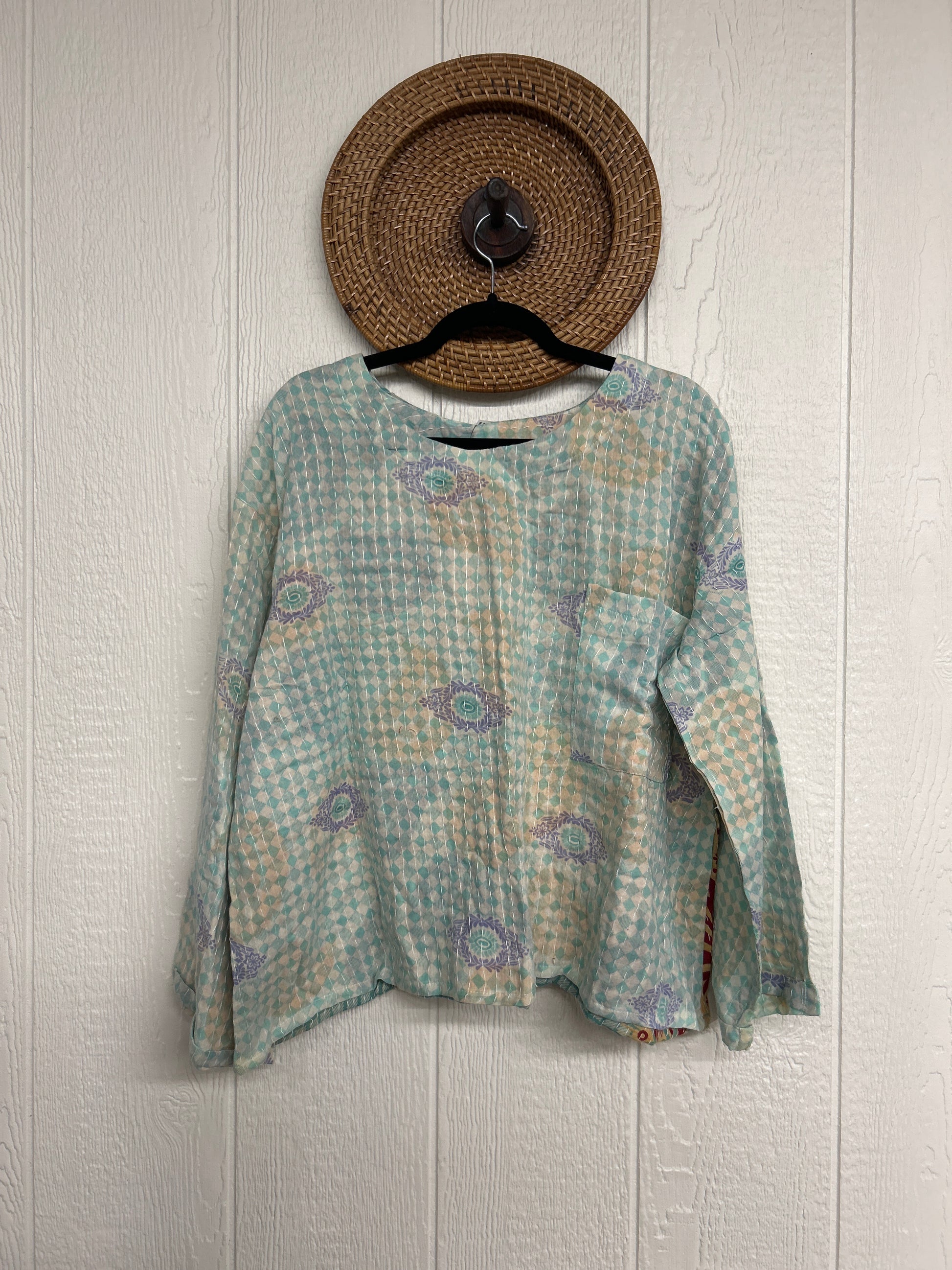 sari. Features long wide sleeves and a pocket on the chest to hold your essentials while you're on lifes adventures.