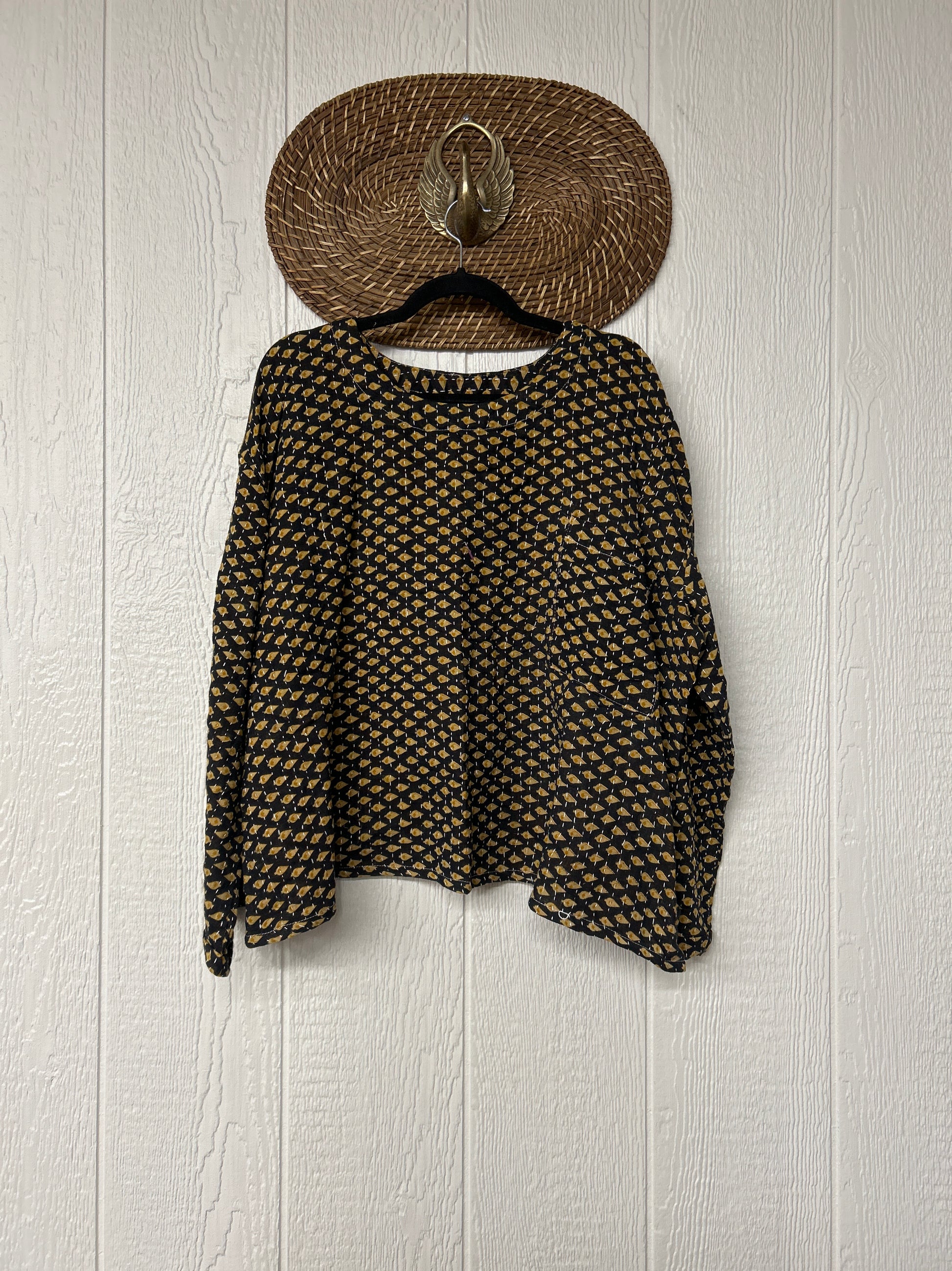 sari. Features long wide sleeves and a pocket on the chest to hold your essentials while you're on lifes adventures.