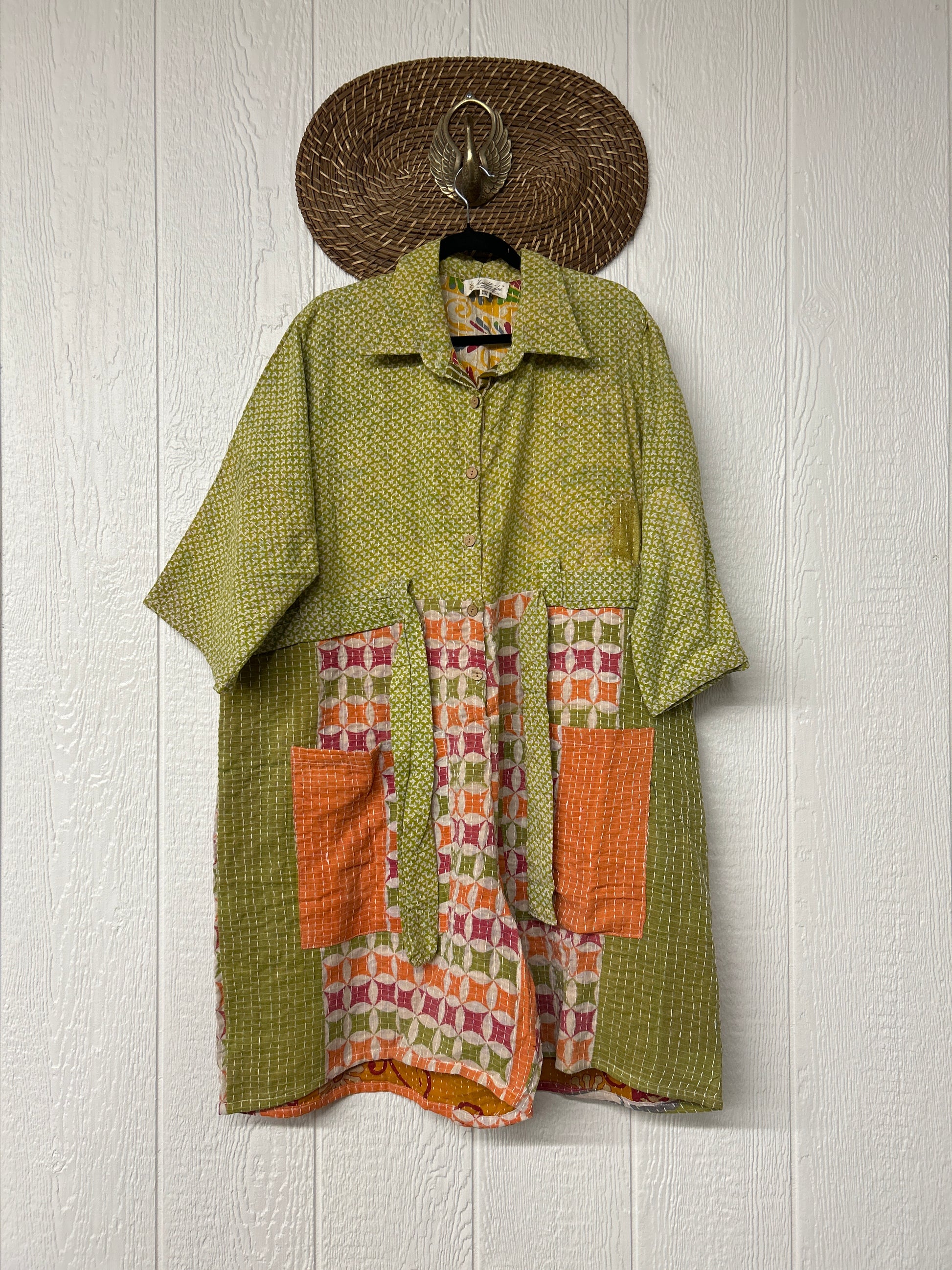 Crafted from our ultra-luxe Kantha stitch vintage cotton sari the Gravity Shortall features a button down front placket, adjustable belt, and cropped "short" length.Size recommended 00-20/22