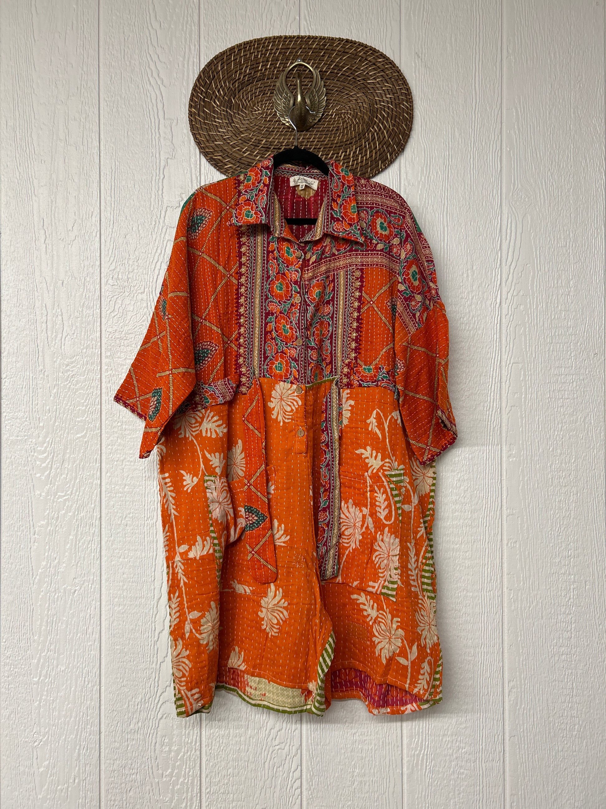 Crafted from our ultra-luxe Kantha stitch vintage cotton sari the Gravity Shortall features a button down front placket, adjustable belt, and cropped "short" length.Size recommended 00-20/22