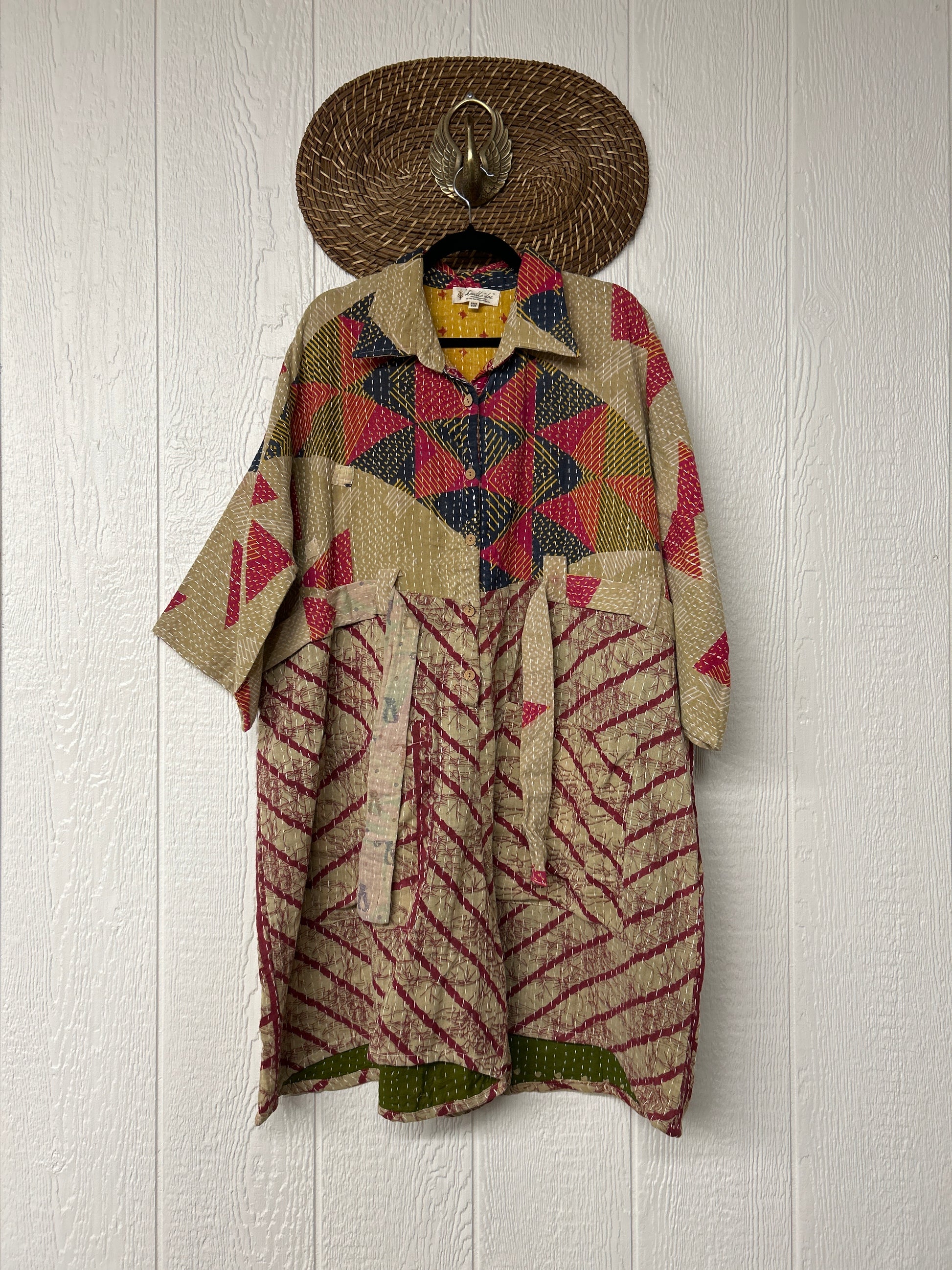 Crafted from our ultra-luxe Kantha stitch vintage cotton sari the Gravity Shortall features a button down front placket, adjustable belt, and cropped "short" length.Size recommended 00-20/22