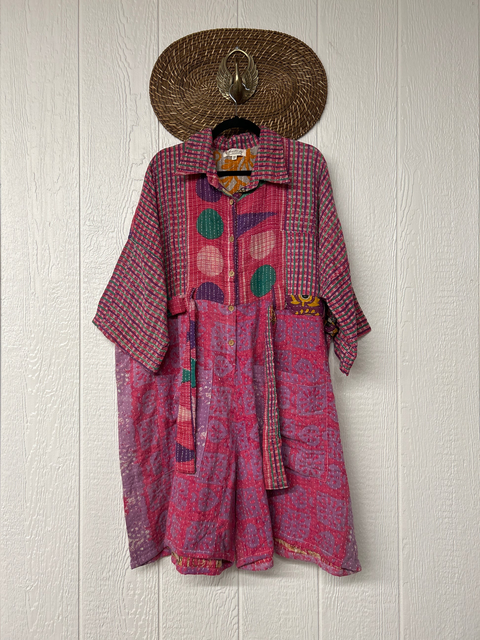 Crafted from our ultra-luxe Kantha stitch vintage cotton sari the Gravity Shortall features a button down front placket, adjustable belt, and cropped "short" length.Size recommended 00-20/22