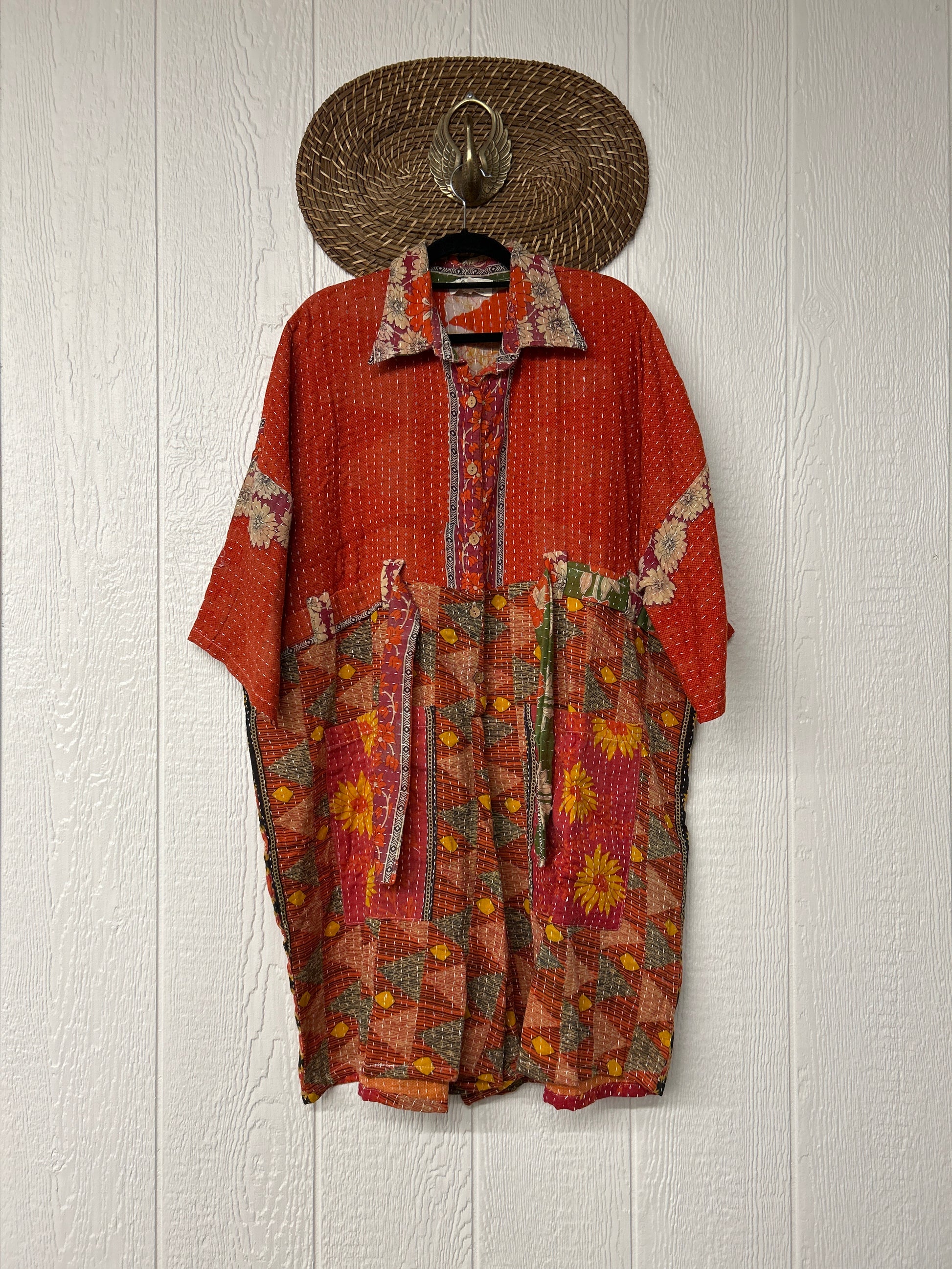 Crafted from our ultra-luxe Kantha stitch vintage cotton sari the Gravity Shortall features a button down front placket, adjustable belt, and cropped "short" length.Size recommended 00-20/22