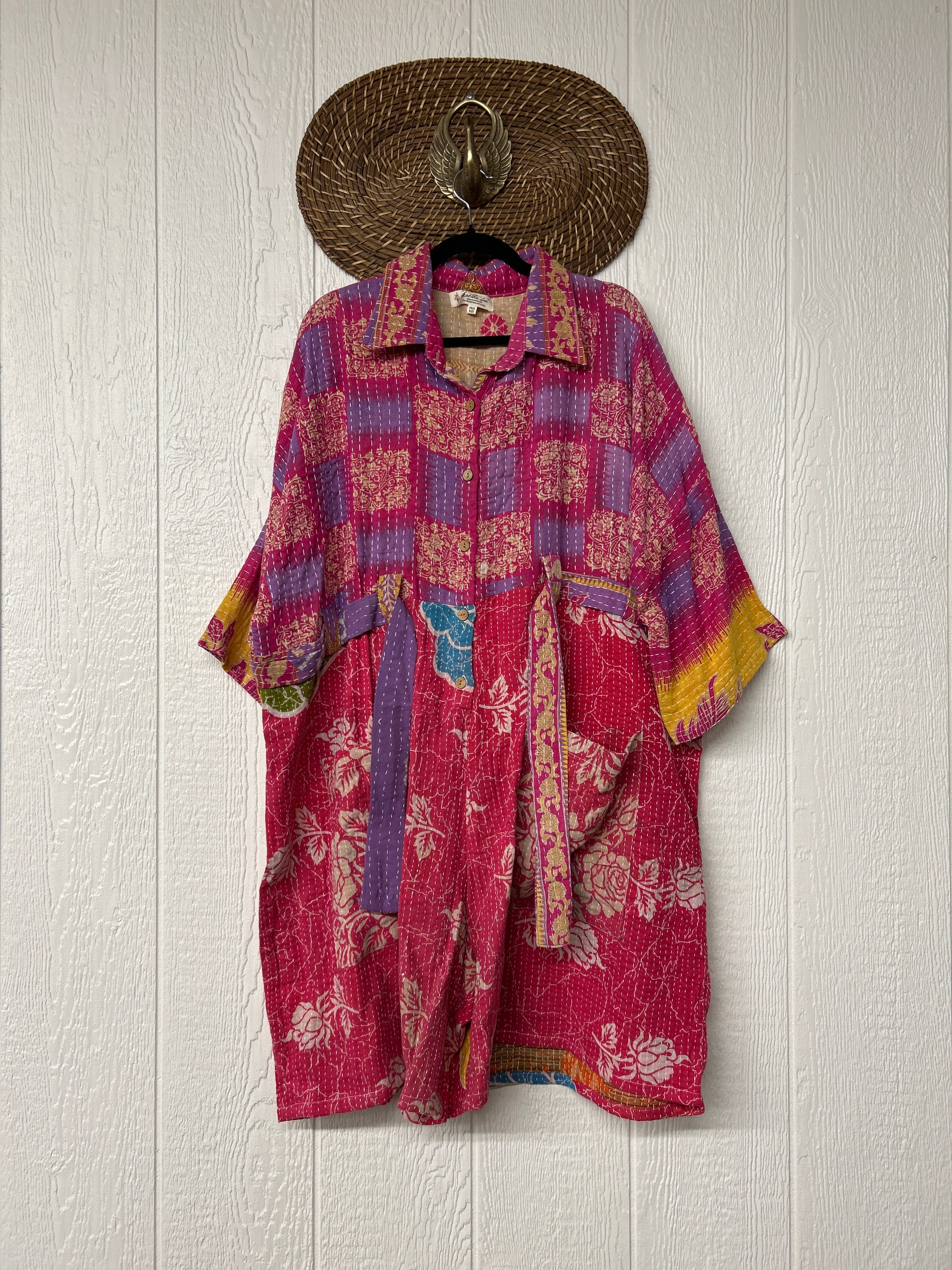 Crafted from our ultra-luxe Kantha stitch vintage cotton sari the Gravity Shortall features a button down front placket, adjustable belt, and cropped "short" length.Size recommended 00-20/22