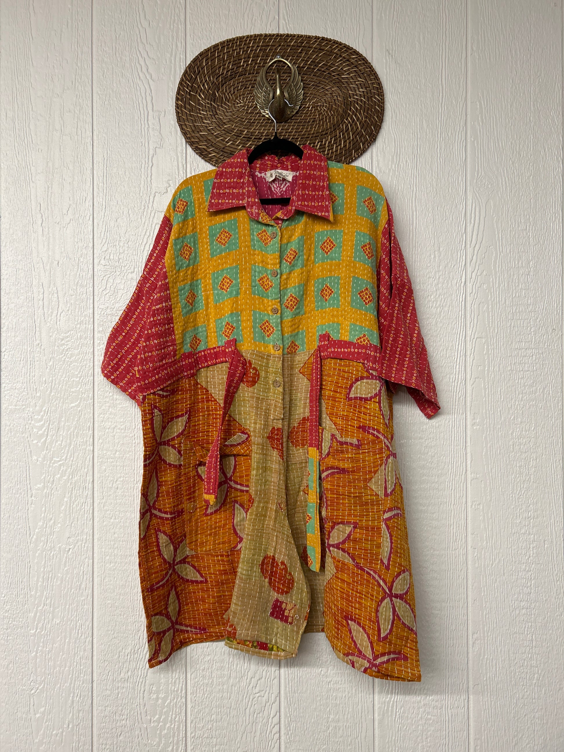 Crafted from our ultra-luxe Kantha stitch vintage cotton sari the Gravity Shortall features a button down front placket, adjustable belt, and cropped "short" length.Size recommended 00-20/22