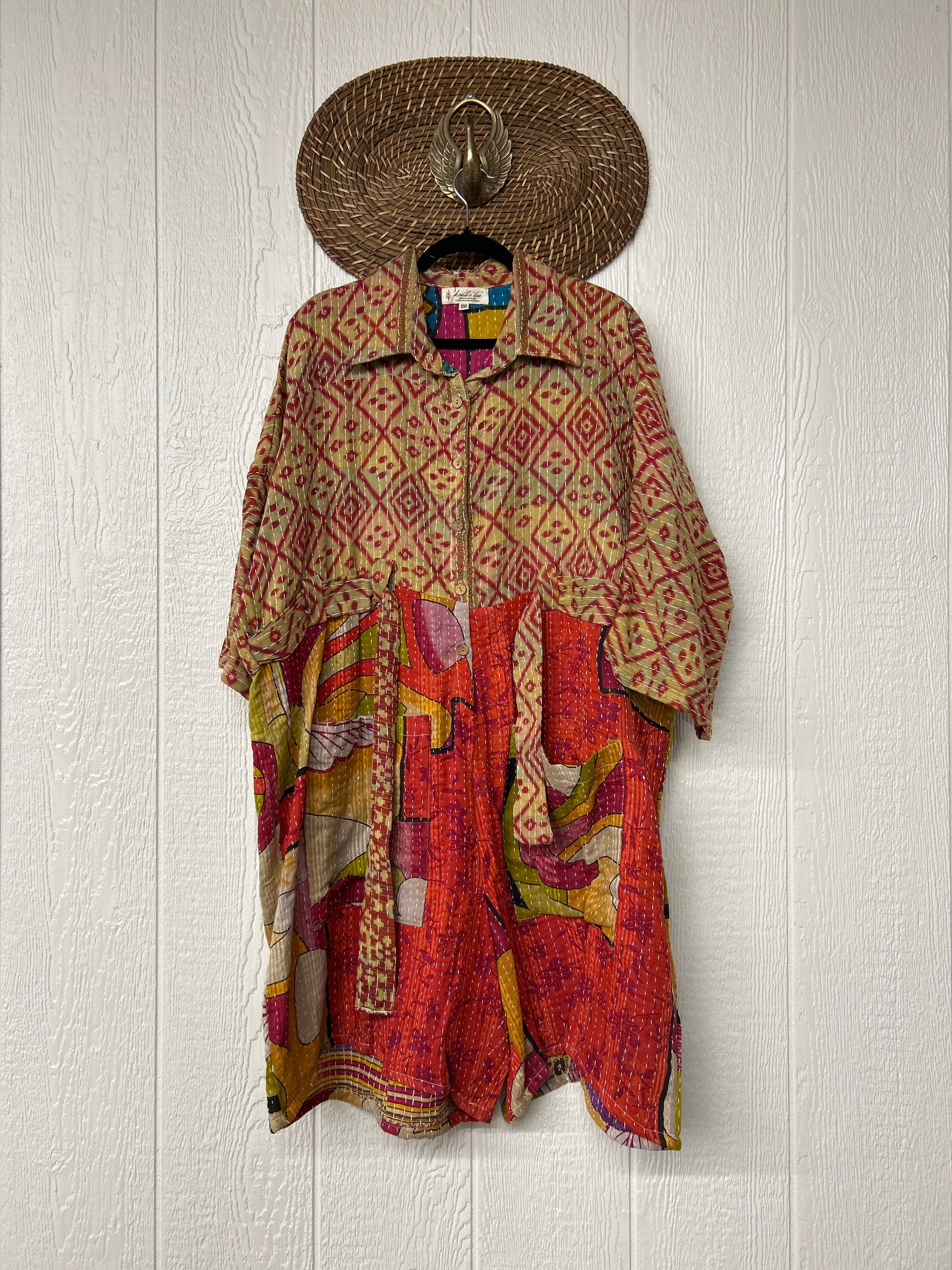 Crafted from our ultra-luxe Kantha stitch vintage cotton sari the Gravity Shortall features a button down front placket, adjustable belt, and cropped "short" length.Size recommended 00-20/22