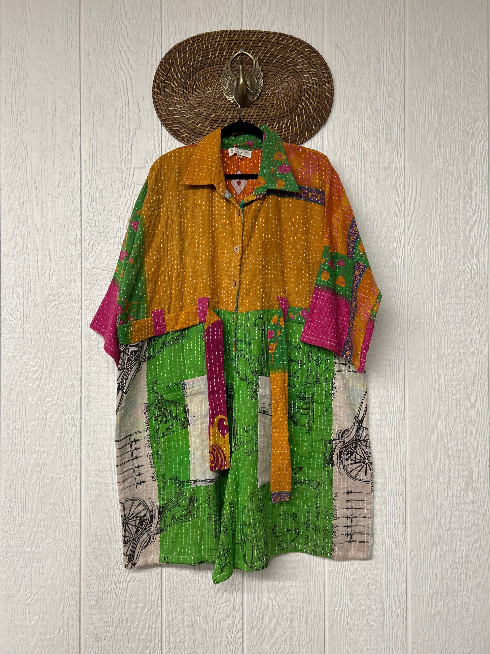 Crafted from our ultra-luxe Kantha stitch vintage cotton sari the Gravity Shortall features a button down front placket, adjustable belt, and cropped "short" length.Size recommended 00-20/22
