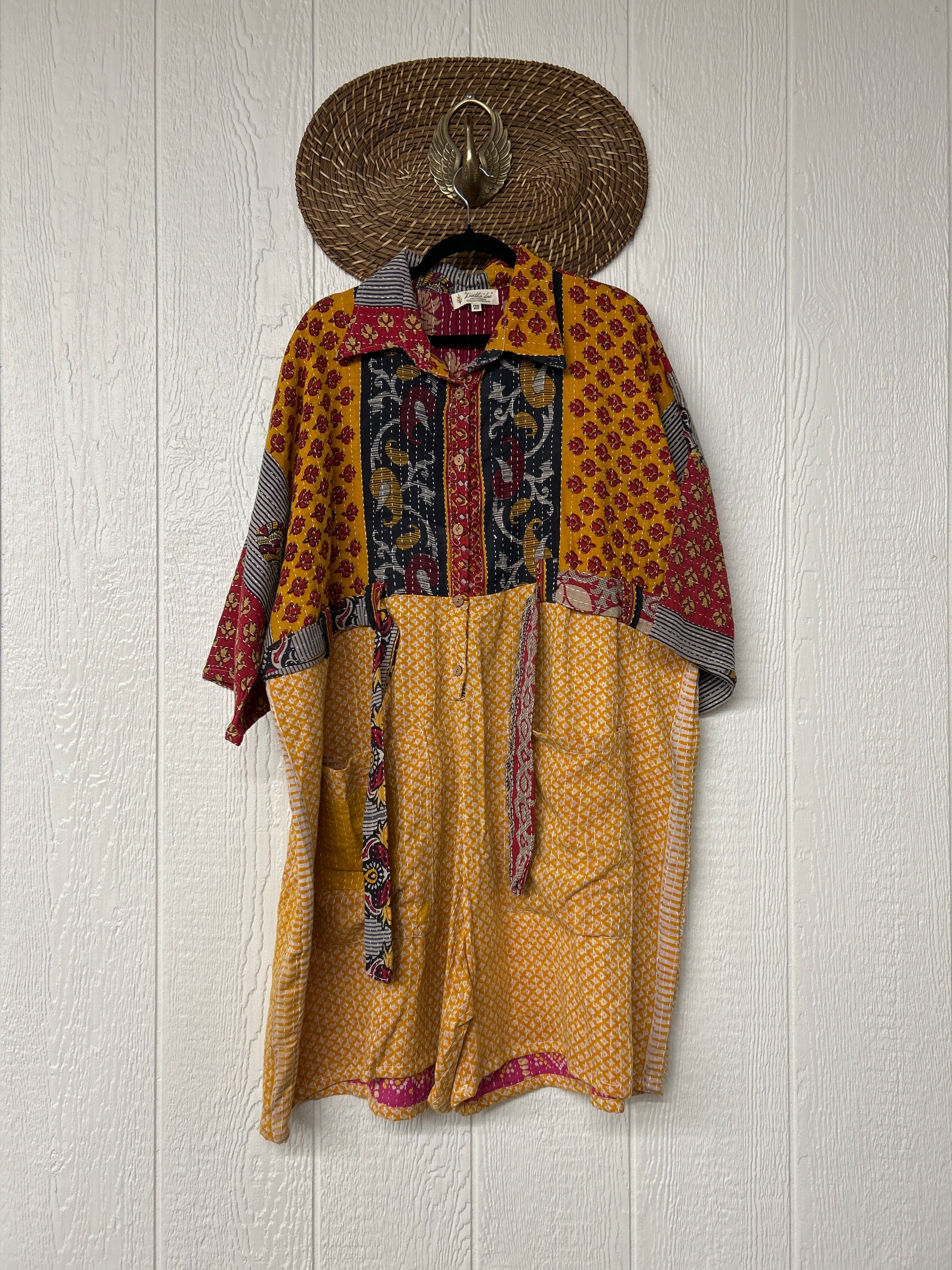 Crafted from our ultra-luxe Kantha stitch vintage cotton sari the Gravity Shortall features a button down front placket, adjustable belt, and cropped "short" length.Size recommended 00-20/22