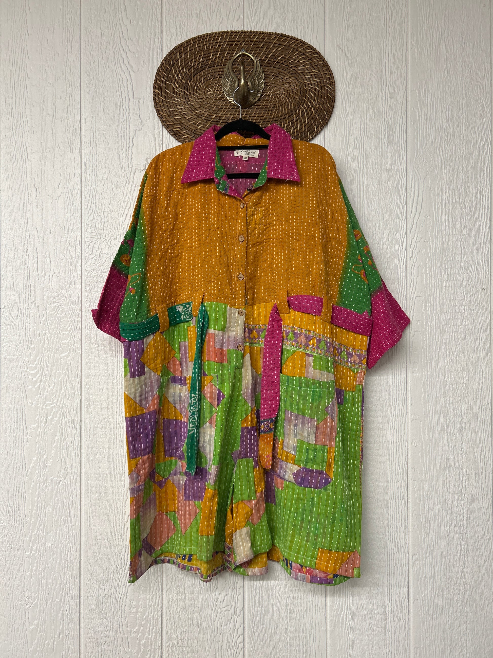Crafted from our ultra-luxe Kantha stitch vintage cotton sari the Gravity Shortall features a button down front placket, adjustable belt, and cropped "short" length.Size recommended 00-20/22