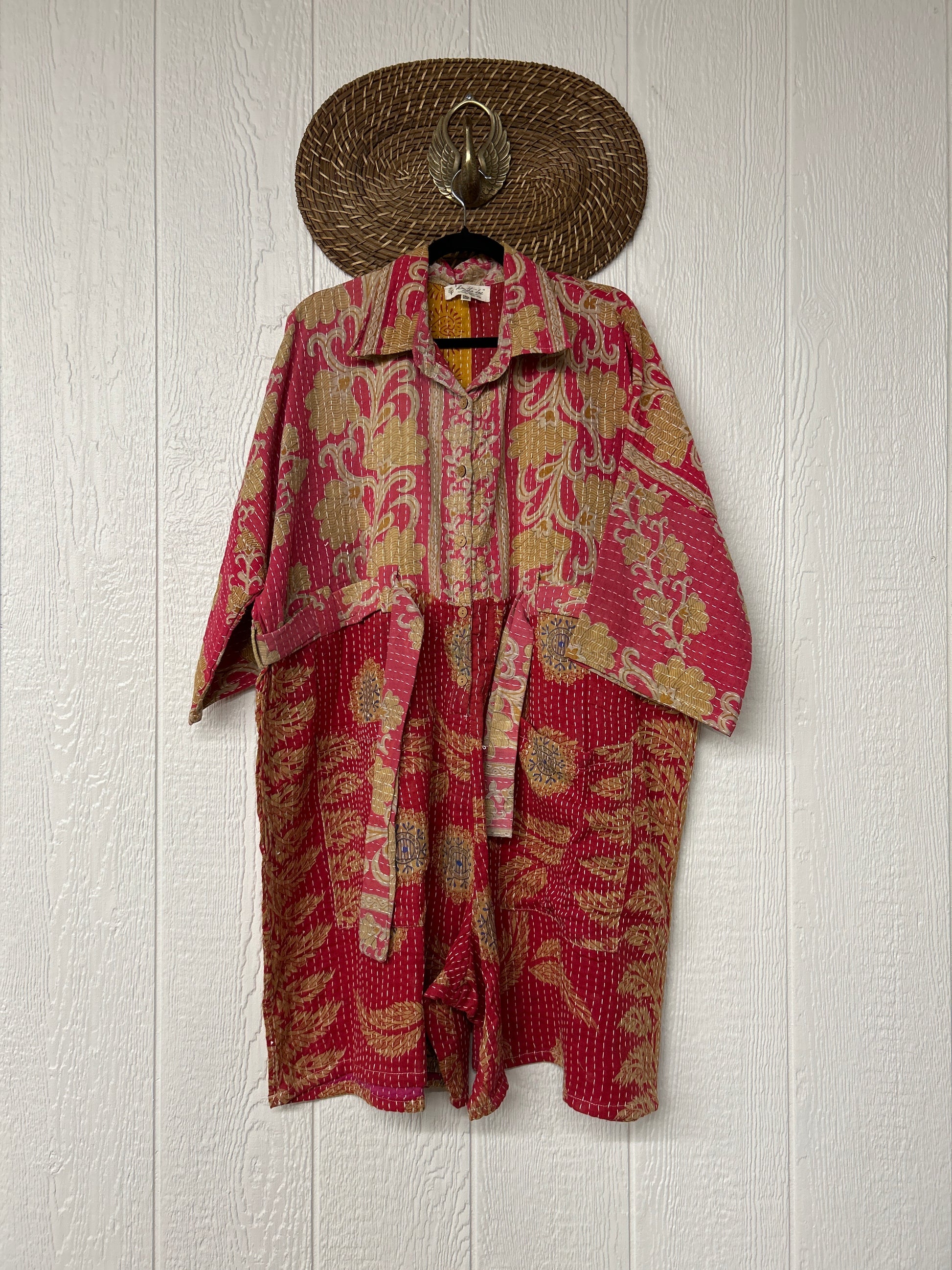 Crafted from our ultra-luxe Kantha stitch vintage cotton sari the Gravity Shortall features a button down front placket, adjustable belt, and cropped "short" length.Size recommended 00-20/22
