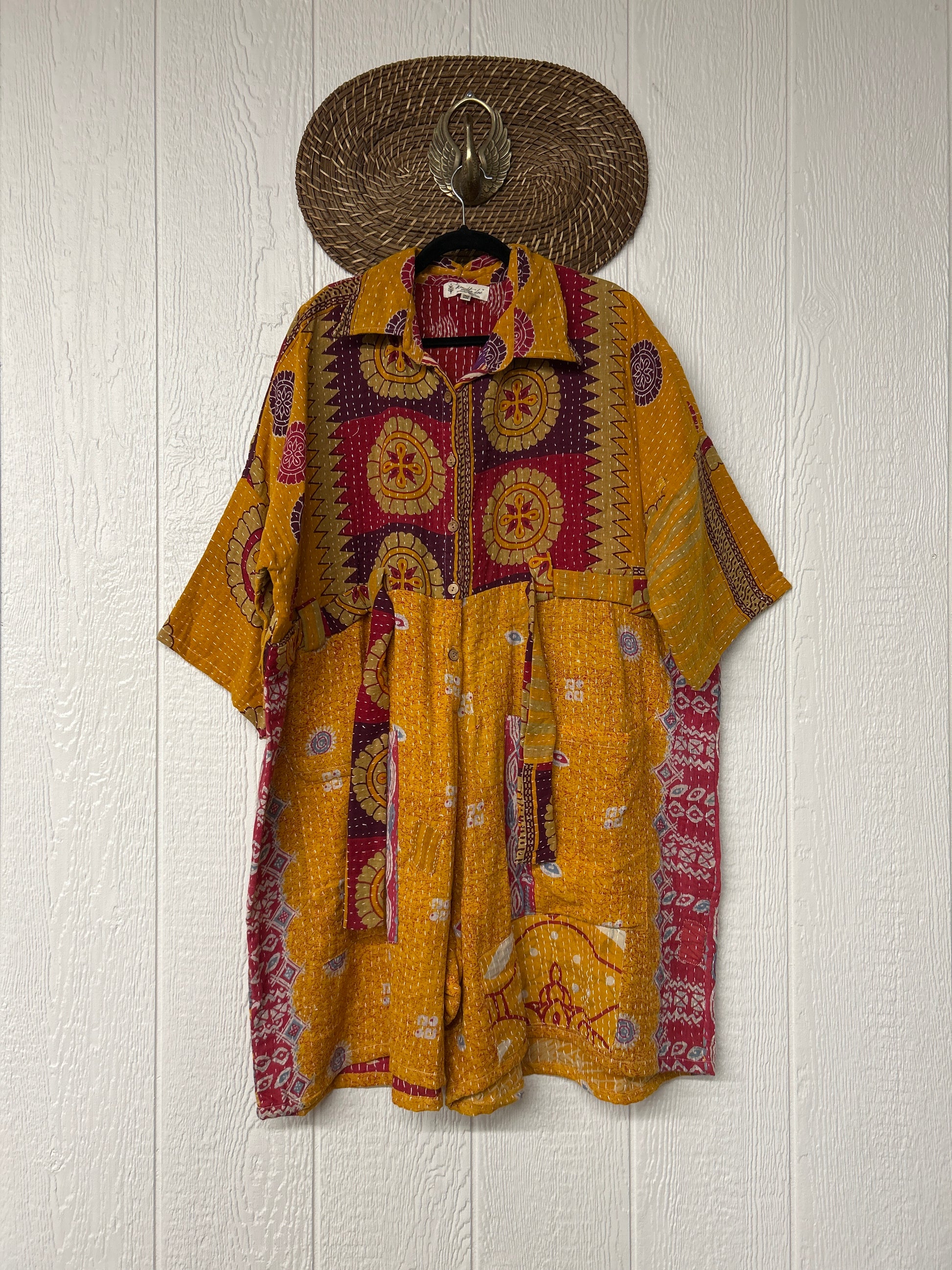 Crafted from our ultra-luxe Kantha stitch vintage cotton sari the Gravity Shortall features a button down front placket, adjustable belt, and cropped "short" length.Size recommended 00-20/22