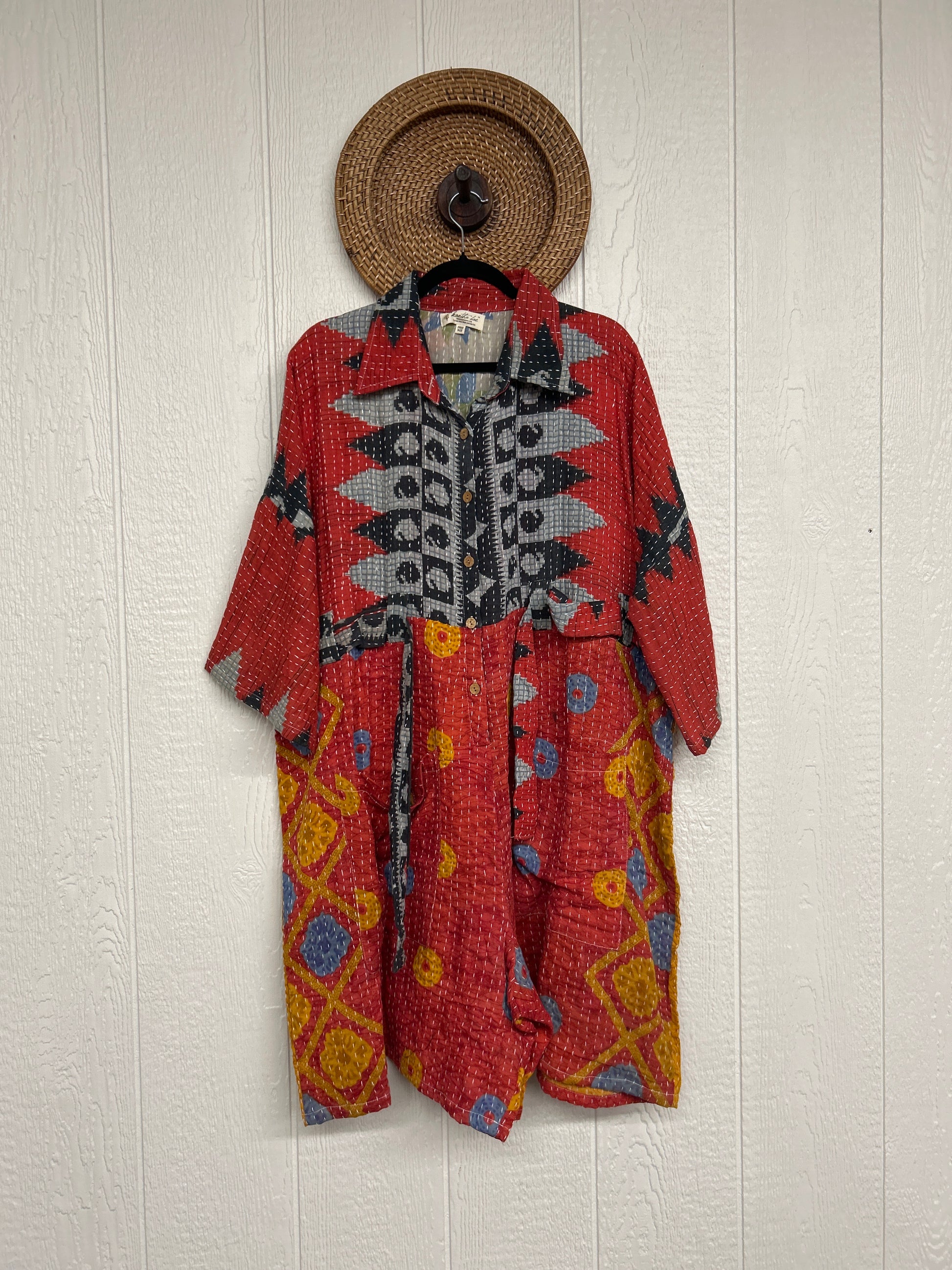 Crafted from our ultra-luxe Kantha stitch vintage cotton sari the Gravity Shortall features a button down front placket, adjustable belt, and cropped "short" length.Size recommended 00-20/22