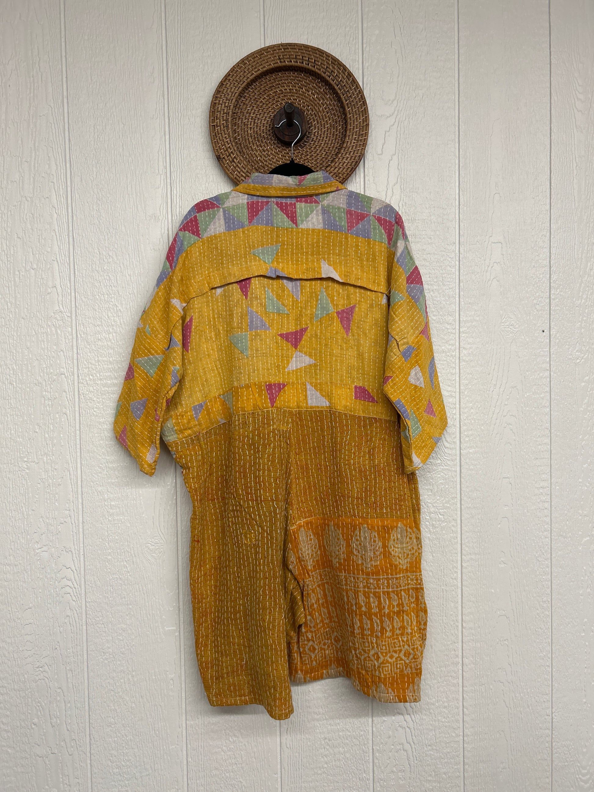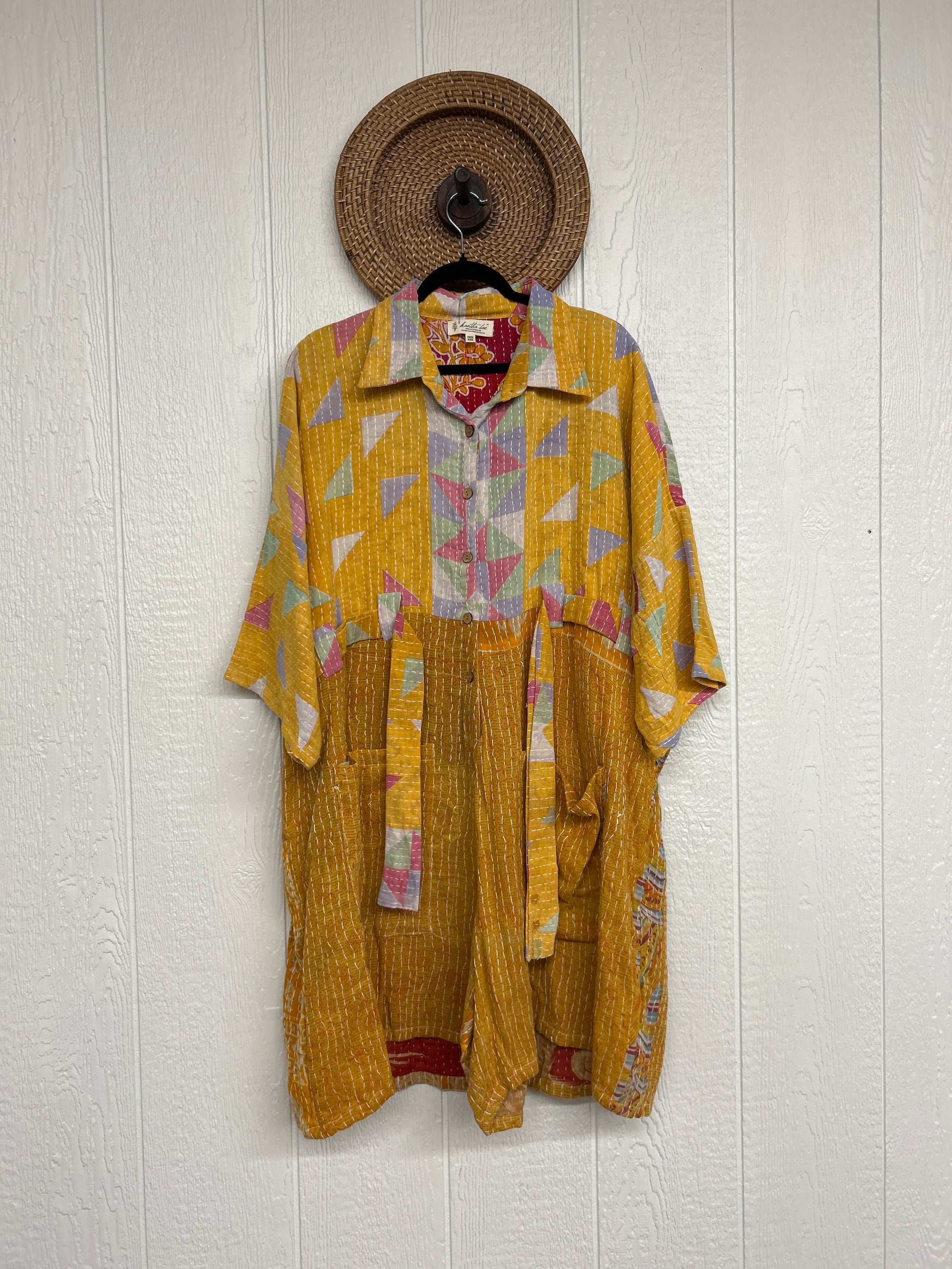 Crafted from our ultra-luxe Kantha stitch vintage cotton sari the Gravity Shortall features a button down front placket, adjustable belt, and cropped "short" length.Size recommended 00-20/22